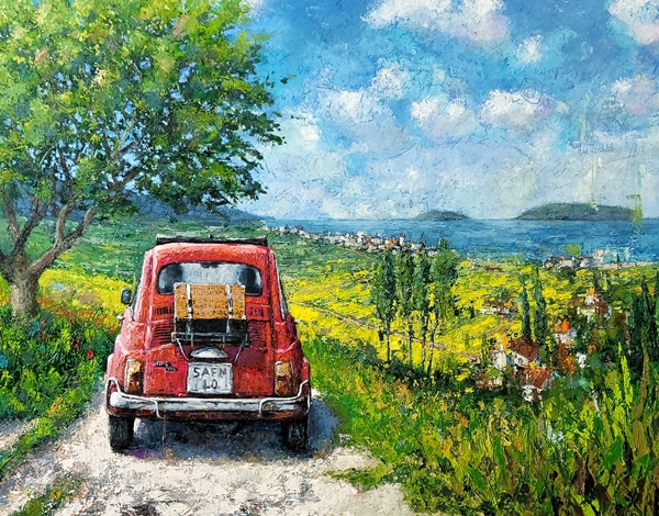 ±è±âÈÆ ÀÛ°¡´Â »îÀ» ÇϳªÀÇ ¿©Á¤À¸·Î ¹Ù¶óº¸¸ç, ÀÏ»ó ¼Ó ½°°ú »çÀ¯ÀÇ ¼ø°£µéÀ» ȸȭ·Î Ç¥ÇöÇØ³»´Â ÀÛ°¡ÀÔ´Ï´Ù. ±×´Â ¡°ÀÌ¹Ì ¿ì¸®´Â »îÀ̶ó´Â ¿©ÇàÀ» Çϰí ÀÖ´Â °Í ¾Æ´Ò±î¿ä?¡±¶ó´Â ¹°À½À» ¹ÙÅÁÀ¸·Î, ¶°³²º¸´Ù´Â ¡®¸Ó¹²¡¯¿¡¼­ ÇǾ´Â °¨Á¤ÀÇ °áÀ» µû¶æÇÑ »öä¿Í ¼¶¼¼ÇÑ ÅÍÄ¡·Î ´ã¾Æ³À´Ï´Ù. È­·ÁÇϰųª ³¸¼± dz°æÀÌ ¾Æ´Ñ, ¿À´Ã ÀÌ ¼ø°£ÀÇ Á¶¿ëÇÑ ¿©À¯¿Í Á¸ÀçÀÇ Àǹ̸¦ ÀÀ½ÃÇÏ´Â ±×ÀÇ ½Ã¼±Àº Àü¸Á ÁÁÀº â°¡¿¡ ¾É¾Æ ¸¶½Ã´Â Ä¿ÇÇ ÇÑ ÀÜó·³, °ü¶÷ÀÚ¿¡°Ô ±íÀº À§·Î¿Í °ø°¨À» ¼±»çÇÕ´Ï´Ù.